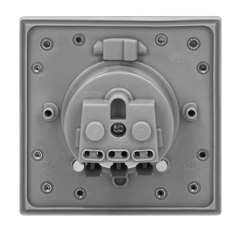 - Rodzaj: Gniazdo pojedyncze z klapką podtynkowe hermetyczne