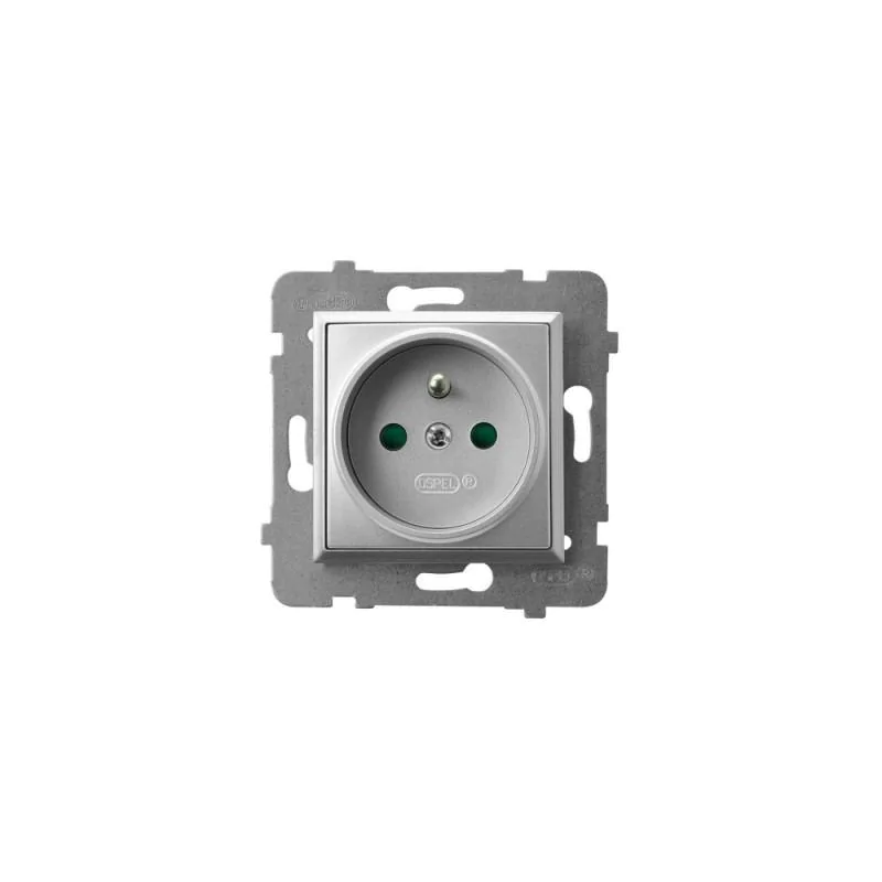 Kontakt elektryczny pojedynczy GP-1UZP/m/18 serii ARIA firmy OSPEL przeznaczony jest do montażu podtynkowego. Pojedyncze gniazdko podtynkowe sprzedawane jest bez ramki w zestawie, dzięki czemu możesz dopasować ją do swojego gustu. Gniazdo elektryczne jest w kolorze srebrnym i wyposażone jest w uziemienie oraz przesłony torów prądowych, które chronią dzieci przed porażeniem prądem. Gniazda elektryczne serii ARIA dostępne są w różnych kolorach.