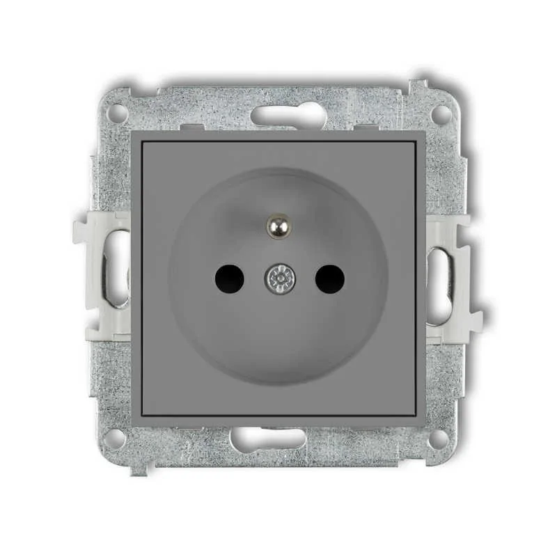 Gniazdo elektryczne pojedyncze 27MGP-1zp serii Deco Mini marki Karlik w kolorze szarym matowym przeznaczone jest do montażu podtynkowego. Gniazda pojedyncze MINI posiadają wbudowane przesłony torów prądowych, zabezpieczające dzieci przed dostępem do części niebezpiecznych instalacji elektrycznej. Mechanizmy i ramki Deco Mini sprzedawane są osobno. Do gniazda pojedynczego należy dokupić ramkę instalacyjną, która dostępna jest w różnych kolorach i krotnościach- od pojedynczej, po pięciokrotną. Ramki serii MINI to najmniejsze (zaledwie 80,0mm x 80,0mm x 6,3mm), dostępne na polskim rynku produkty tego typu. Gniazda i włączniki Mini sprzedawane są z ramką pośrednią w kolorze mechanizmu.
