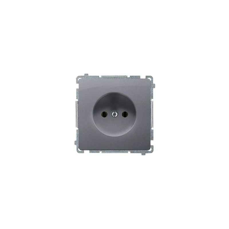 Gniazdo wtyczkowe bez uziemienia (moduł) 16A, 250V, zaciski śrubowe; srebrny mat