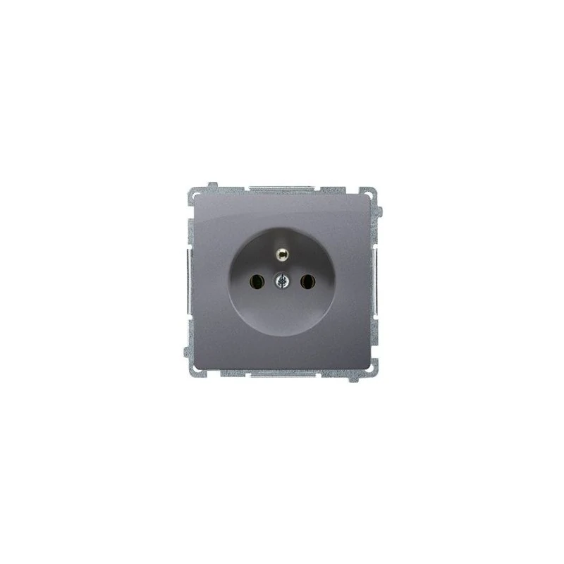 Gniazdo wtyczkowe z uziemieniem (moduł), z przesłonami torów prądowych, 16A, 250V, zaciski śrubowe; srebrny mat