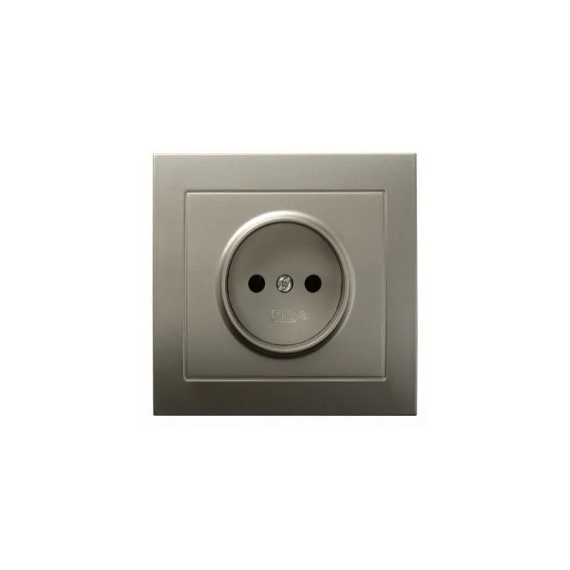 Gniazdo elektryczne pojedyncze w kolorze satynowym serii KIER firmy OSPEL, przeznaczone do montażu podtynkowego. Gniazdo posiada w komplecie ramkę.