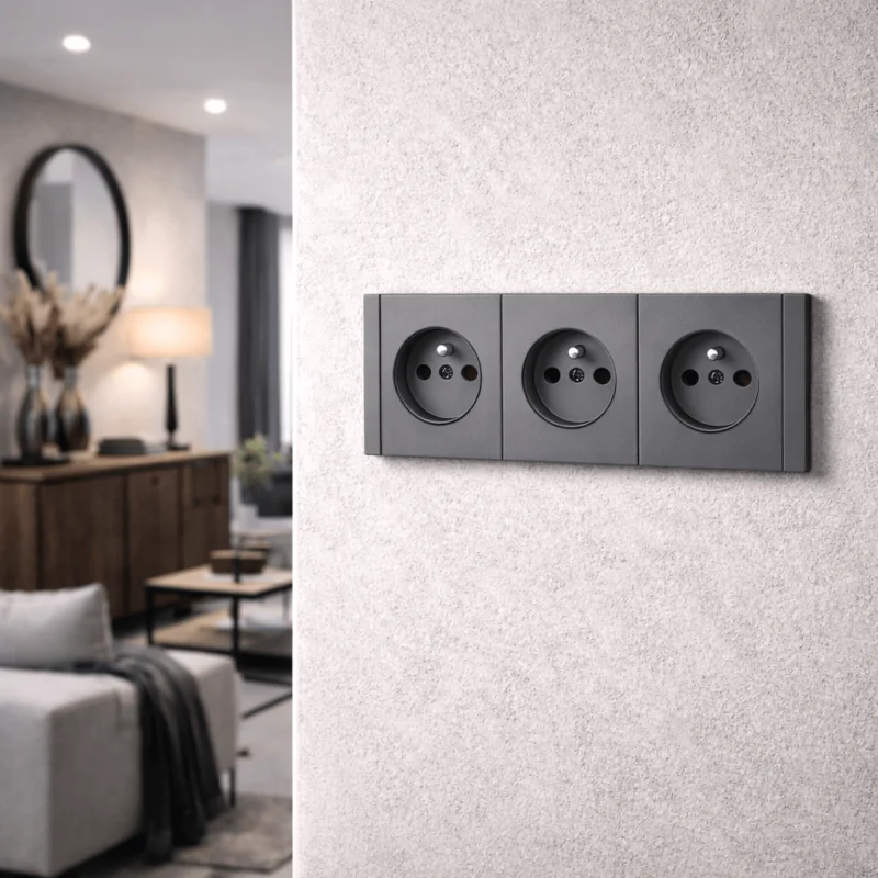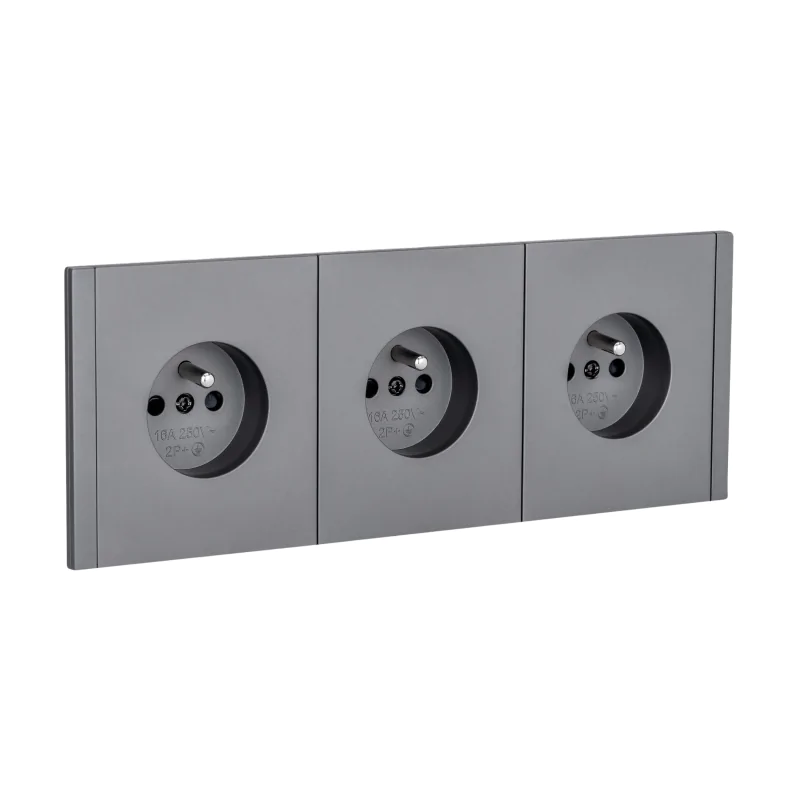 Nowa linia premium włączników i gniazd podtynkowych, łącząca elegancki design z wysoką jakością materiałów i bezpieczeństwem użytkowania. Smukła, minimalistyczna konstrukcja oraz precyzyjne wykończenie zapewniają komfort, trwałość i estetykę w każdym wnętrzu. Gniazdo elektryczne pojedyncze z uziemieniem typu French posiada ramkę pojedynczą w zestawie i przeznaczone jest do montażu w standardowej puszcze fi 60mm. Zaciski gwintowane zapewniające pewne połączenie przewodów System ramkowy umożliwia montaż od 1 do 3 modułów w układzie poziomym, co daje dużą swobodę projektowania. Modny szary kolor pasuje do wielu nowoczesnych aranżacji.