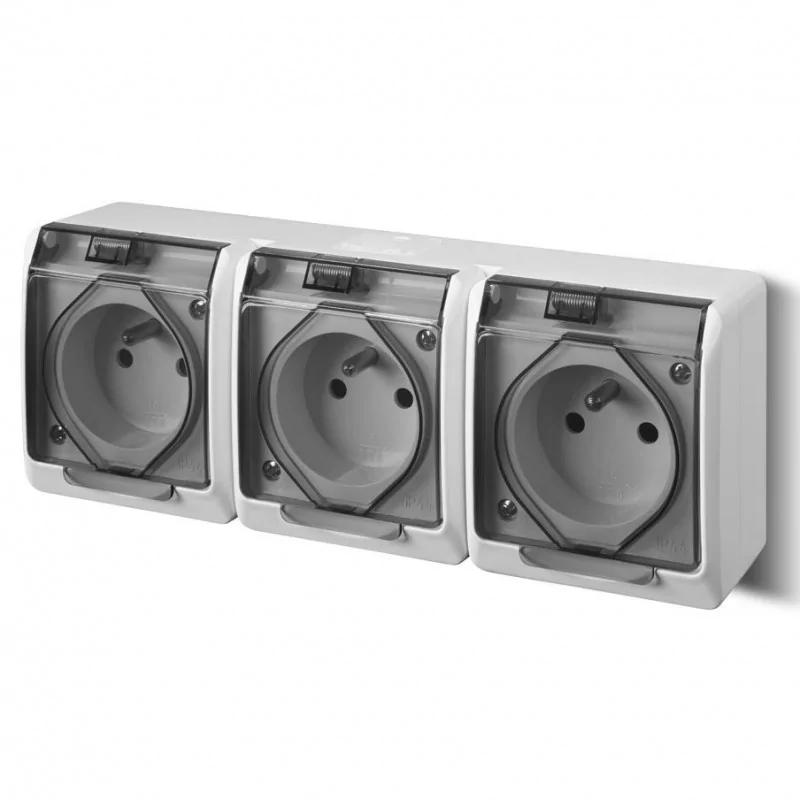 0323-01 HERMES Gniazdo potrójne natynkowe z przydymioną klapką IP44 ELEKTRO-PLAST