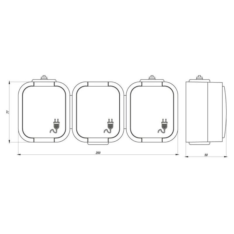 - Typ: gniazdo bryzgoszczelne potrójne z klapką
