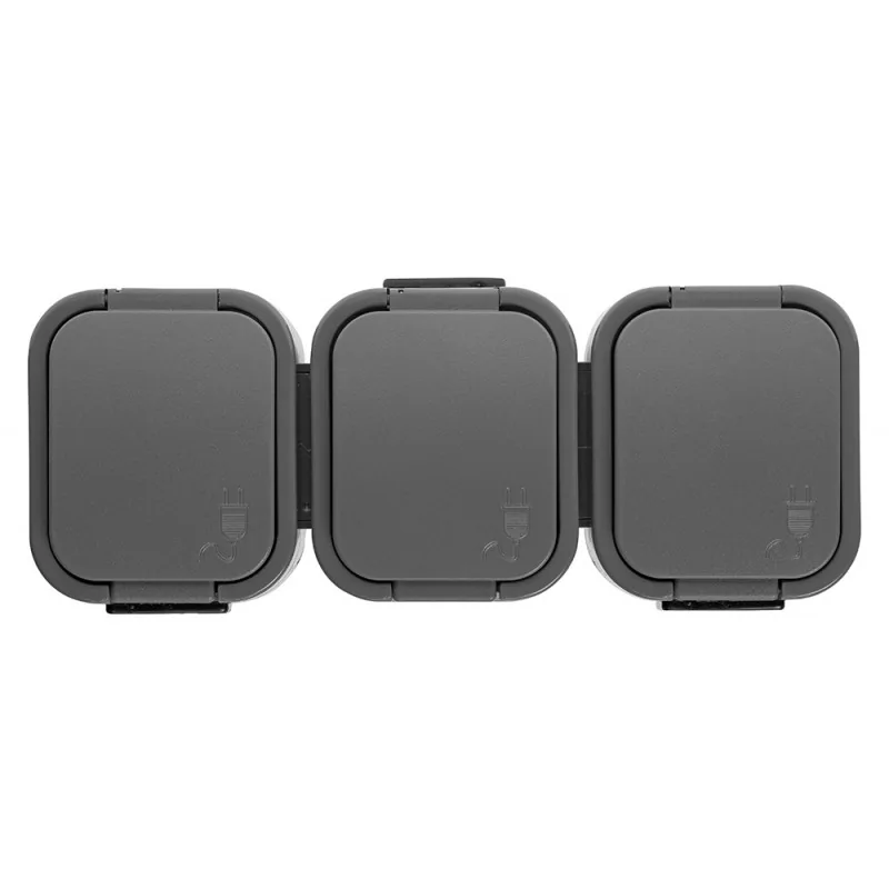 Gniazdo bryzgoszczelne potrójne z klapką w kolorze szzarym