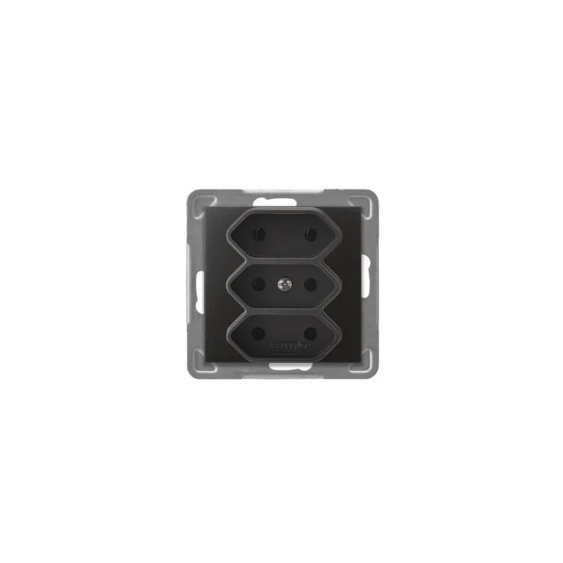 Potrójne antracytowe gniazdo elektryczne bez uziemienia przeznaczone do montażu podtynkowego serii IMPRESJA firmy OSPEL. Gniazdko wymaga dokupienia ramki serii IMPRESJA firmy OSPEL.