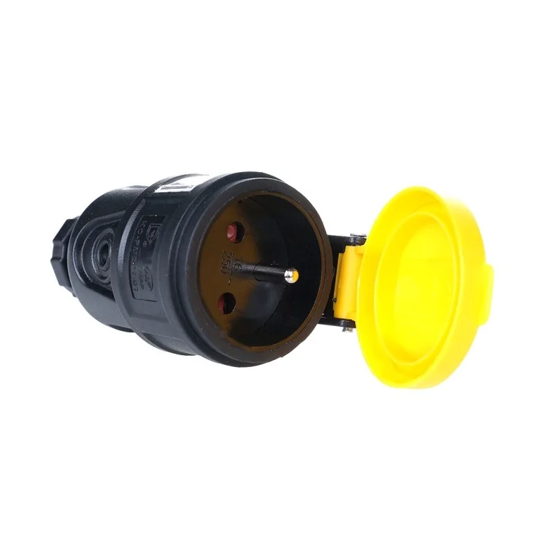 GG-02 Gniazdo proste gumowe czarne z żółtą klapką IP44 16A RUM-LUX