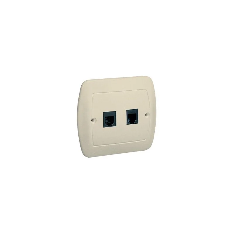 Gniazdo telefoniczne RJ11 podwójne. Montaż do puszki na wkręty; beż