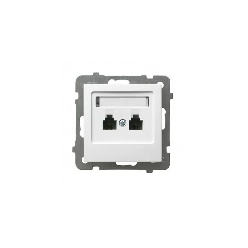 Gniazdo telefoniczne podwójne niezależne firmy OSPEL z serii AS w białej kolorystyce, sposób montażu: podtynkowo ( brak ramki).