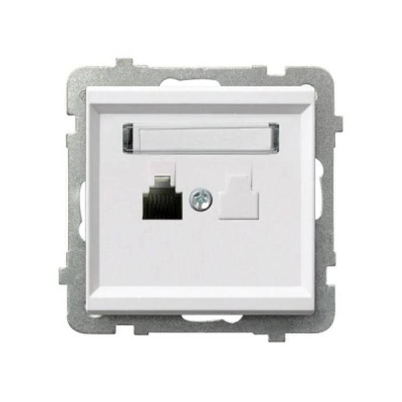 Gniazdo telefoniczne pojedyncze marki OSPEL i eleganckim kwadratowym kształcie w kolorze białym. Gniazdo telefoniczne podtynkowe cechuje się estetycznym wyglądem na ścianie. Gniazdko do telefonu lub internetu możesz zamontować na korytarzu, w przedpokoju, w pokojach hotelowych lub innych miejscach, gdzie przewidujesz korzystanie z urządzeń przesyłających dane za pomocą sieci telefonicznej.