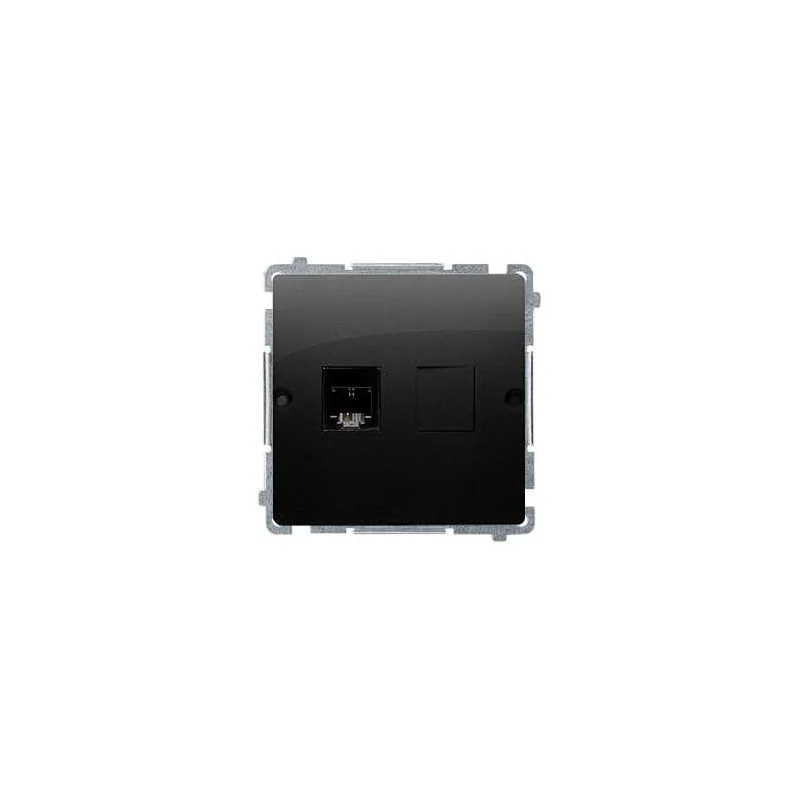 Gniazdo telefoniczne RJ11 (moduł) serii Simon Basic marki Kontakt-Simon. Montaż gniazda na wkręty do puszki. Gniazdo w kolorze czarny mat przeznaczone jest do montażu podtynkowego. Do gniazda należy dokupić standardową ramkę instalacyjną serii Simon Basic.