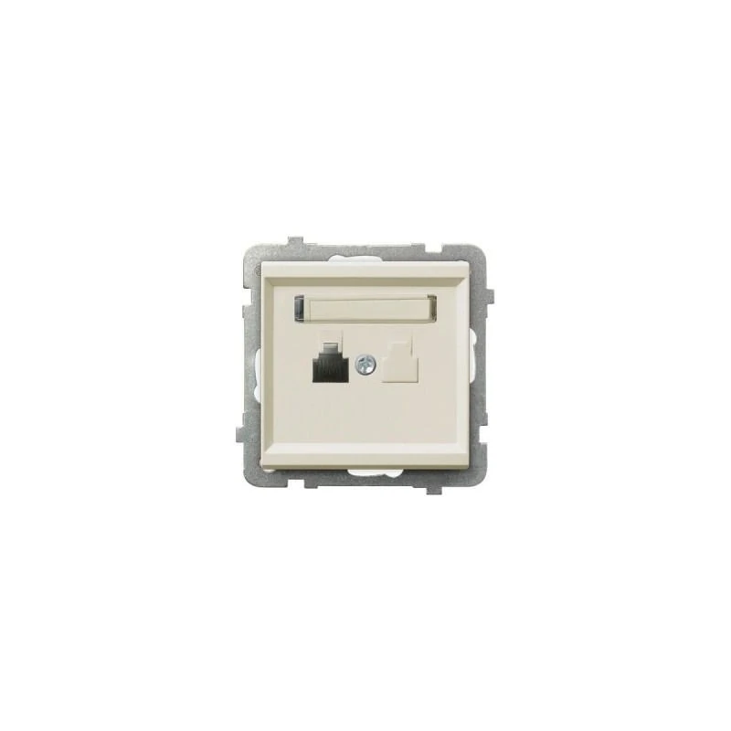 Gniazdo telefoniczne pojedyncze marki OSPEL i eleganckim kwadratowym kształcie w kolorze ECRU. Gniazdo telefoniczne podtynkowe cechuje się estetycznym wyglądem na ścianie. Gniazdko do telefonu lub internetu możesz zamontować na korytarzu, w przedpokoju, w pokojach hotelowych lub innych miejscach, gdzie przewidujesz korzystanie z urządzeń przesyłających dane za pomocą sieci telefonicznej.
