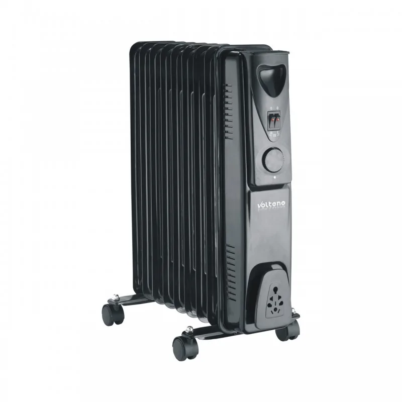 Grzejnik olejowy VOLTENO VO0156 to grzejnik domowy składający się z 9 żeberek oraz 3 stopni regulacji mocy - max do 2000W. Wbudowany termostat mechaniczny zabezpieczajacy przed przegrzaniem czynią ten model w pełni bezpiecznym. Model wyposażony jest w zwrotne kółka do łatwego przemieszczania Model dedykowany do domów, bloku, mieszkania czy innych pomieszczeń użytkowych, w których pragniesz podnieść temperaturę. Produkt VO0156 to grzejnik olejowy, który długo utrzymuje ciepło oraz posiada duża powierzchnię grzewczą, dodatkowo cechuje się szybkim promieniowaniem grzewczym.