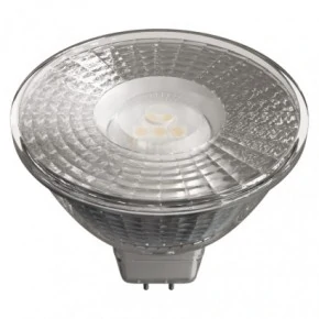 Żarówka LED w kształcie reflektora firmy EMOS o mocy 4.5W -odpowiednik 28W, to niskonapięciowa żarówkk MR16 12V. LED-owa żarówka świeci ciepłą białą barwą światła, o o temperaturze barwowej równej 3000K. Strumień świetlny żarówki LED wynosi 380lumenów, a jej wymiary to: 50 x 46 mm. Żarówka LED wyposażona jest w trzonek MR16 i działa z napięciem 12V. Przybliżony czas działania reflektorowej żarówki LED to około 30000h oraz 25 000 cykli on/off. Kąt rozsyłu światła jest równy 100 stopni. Żarówka posiada 3 letnią gwarancję. Żarówkę można zasilać napięciem 12 V prądu stałego albo zmiennego o częstotliwości do 50 Hz. Szklany korpus żarówki zapewnia jej doskonały wygląd podczas świecenia.