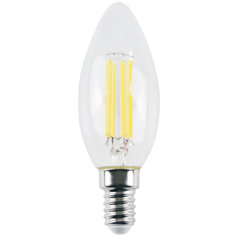Żarówka led z filamentami marki Polux przystosowana jest do lamp w szykownym, jak i industrialnym stylu. Przezroczysta bańka i umieszczone w niej dekoracyjne filamenty dodadzą uroku każdej oprawie. Prezentowane źrodło światła posiada trzonek E14 i działa z mocą 4,5W, czego odpowiednikiem jest 40W tradycyjnego rozwiązania. Produkt świeci neutralnym białym światłem o temperaturze barwowej 4000K i strumieniu świetlnym równym 500 lumenów. Przybliżony czas działania żarówki led E14 to około 25000h oraz 12500 cykli on/off.