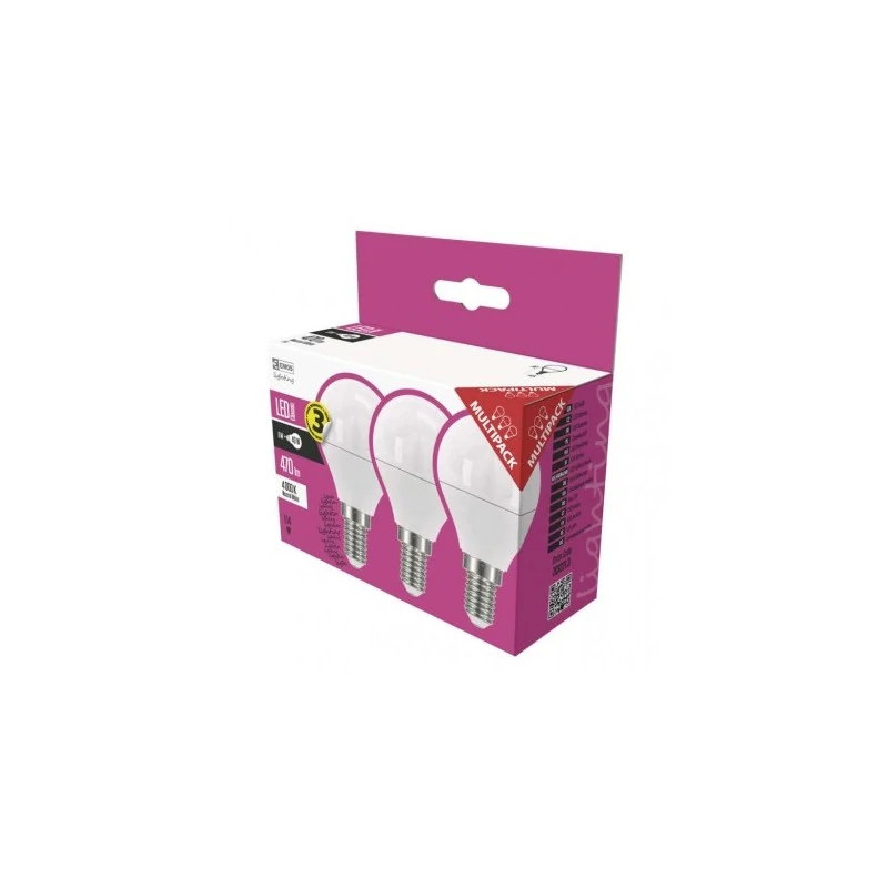Komplet 3 żarówek led kulka 5W-40W E14 neutralna 470lm EMOS ZQ1221.3