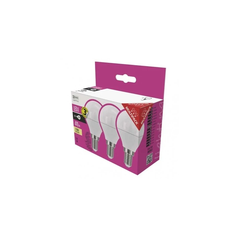 Komplet 3 Żarówek LED mini globe 5W-40W E14 ciepła 470lm 3 lata EMOS ZQ1220.3