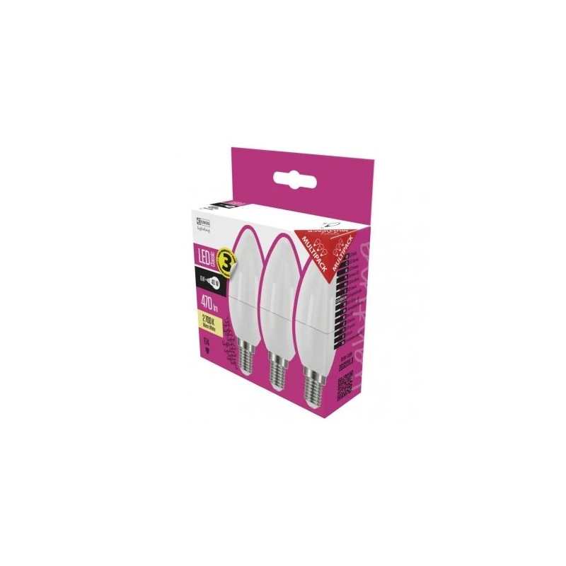 Komplet trójpak Żarówka LED mleczna świeczka 5W-40W 470lm E14 ciepła EMOS ZQ3220.3