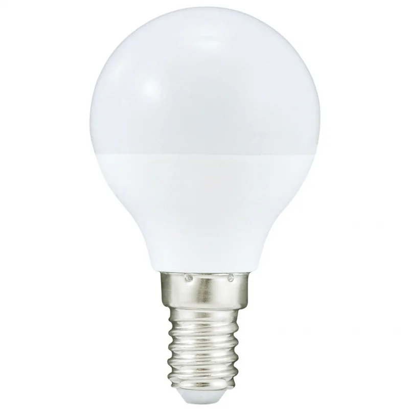 Żarówka LED marki POLUX to energooszczędne źródło światła emitujące ciepłe białe światło, które jest przyjemne dla oczu, o temperaturze barwowej 3000K i strumieniu świetlnym równym 250 lumenów. Prezentowany model żarówki świeci z mocą 3W, a jej odpowiednikiem jest tradycyjne źródło światła o mocy 25W. Produkt posiada mleczny klosz, mały gwint E14 oraz bańkę w kształcie kulki G45. Przybliżony czas działania żarówki led E14 to około 25000h oraz 1200 cykli włączeń i wyłączeń.