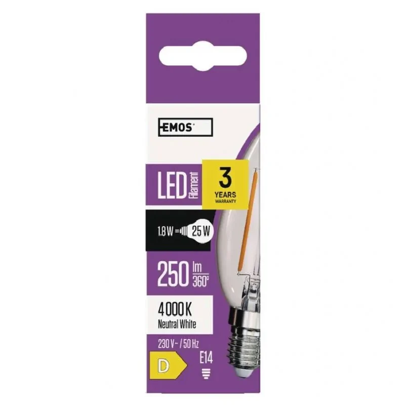 Żarówka LED Filament świeczka E14 1,8W 250lm neutralna biel ZF3201 Emos
