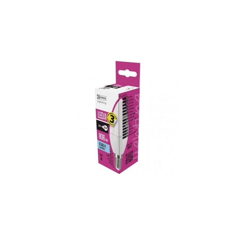 Żarówka LED marki EMOS w kształcie świeczki to energooszczędne źródło światła nowoczesnej technologii LED. Produkt wyposażony został w gwint E14. Wysoka jakość wykonania gwarantuje długą żywotność prezentowanego modelu żarówki do 30000h oraz 25000 cykli on/off. Żarówka LED E14 świeci zimnym światłem o temperaturze barwowej 6500K i strumieniem świetlnym równym 806 lumenów, Prezentowane źródło światła działa z mocą 7,3W, a jej odpowiednikiem jest zwykła, tradycyjna żarówka o mocy 60W. Żarówka led objęta została 3-letnią gwarancją.