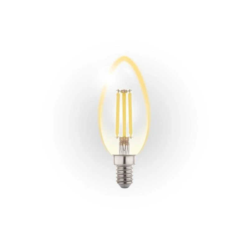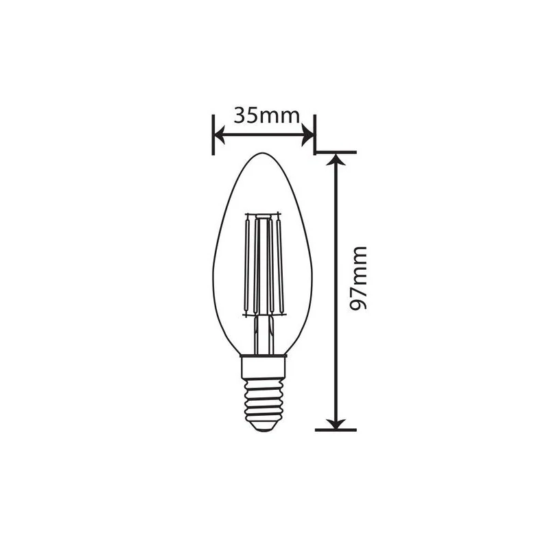 Ozdobna żarówka świeczka led z filamentem o gwincie E14 to źródło światła o bańce C37 o wymiarach 35x97mm. Dzięki zastosowanej technologii LED, żarówka o mocy 6W jest niezwykle energooszczędna. Żarówka w kształcie świeczki - bańka C37 z gwintem e14 świeci, przyjemną ciepłą barwą światła o temperaturze 3000K na poziomie 600 lumenów. Żarówka ledowa z filamentami rozsyła światło pod kątem 270 stopni. Wersja 6W odpowiada 48W tradycyjnej żarówce.