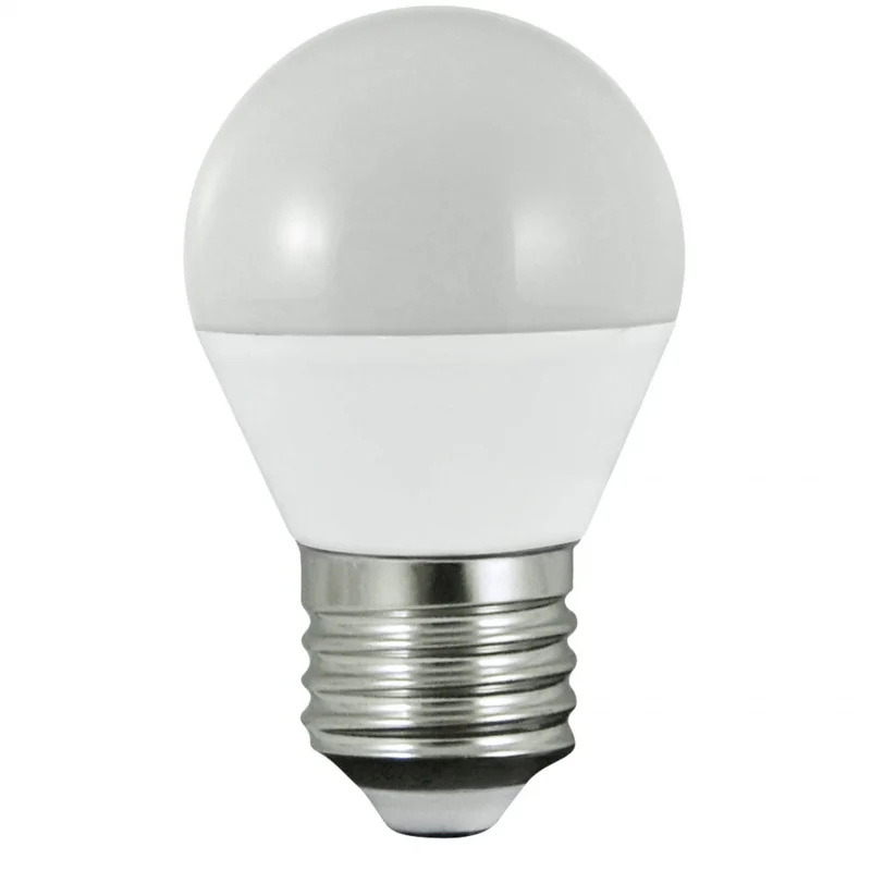 Żarówka LED marki POLUX to energooszczędne źródło światła emitujące ciepłe białe światło, które jest przyjemne dla oczu, o temperaturze barwowej 3000K i strumieniu świetlnym równym 640 lumenów. Prezentowany model żarówki świeci z mocą 7W, a jej odpowiednikiem jest tradycyjne źródło światła o mocy 50W. Produkt posiada mleczny klosz, duży gwint E27 oraz bańkę w kształcie kulki G45. Przybliżony czas działania żarówki led E27 to około 25000h oraz 1200 cykli włączeń i wyłączeń.