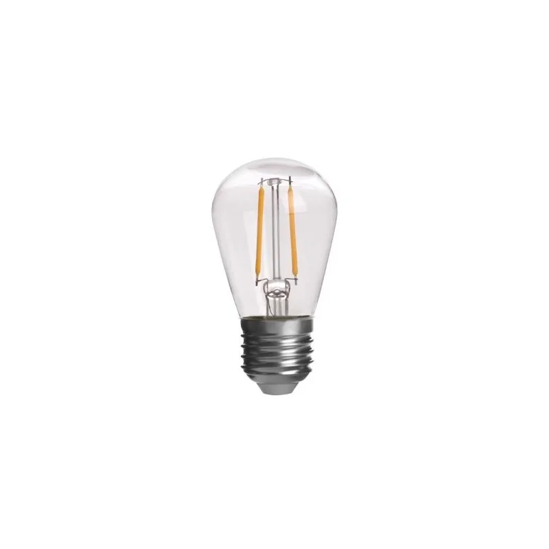 Żarówki LED marki LVT posiadają szklany klosz w środku, którego znajdziemy dekoracyjny filament. Produkt o gwincie E27, świeci ciepłą barwą światła 2700K, każda z mocą 2W. Żarówki wykonane zostały w technologii COB LED. Przedstawiony model wyemituje nam światło na poziomie 140lm. Żarówka LED przeznaczona do girland, które staną się dekoracją w wybranym przez nas wnętrzu.