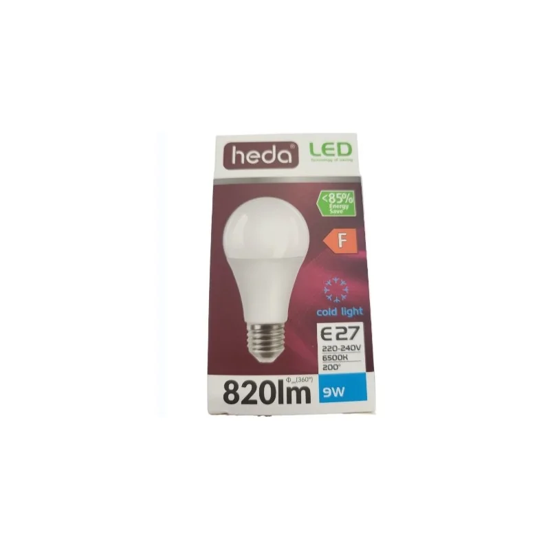 Żarówka LED z trzonkiem E27 firmy Heda oddaje światło w zimnej, białej barwie. Doskonale sprawdzi się w magazynach, halach produkcyjnych, centrach handlowych, a także pomieszczeniach domowych wykonanych w modnym, modernistycznym stylu. Dioda LED odznacza się wysoką klasą energetyczną A+. Zużywa do 85% mniej energii od tradycyjnych żarówek i świetlówek przy czym działa nawet do 25000 godzin. Żarówka LED włącza się natychmiast po zaświeceniu. Nie wolno jej stosować w obudowach z urządzeniami elektronicznymi. Moc żarówki to 10W, co przekłada się na około 60W w tradycyjnych żarówkach.