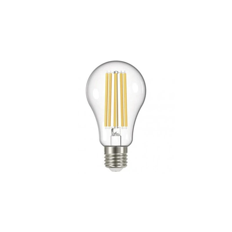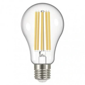 Led-owa żarówka o bańce A67 działa z mocą 17W, a jej odpowiednikiem jest tradycyjne źródło światła o mocy 150W. Produkt posiada trzonek E27 i świeci ciepłym białym światłem o temperaturze barwowej 2700K i strumieniu świetlnym 2452 lumenów. Żarówka led wyposażona została w przezroczysty klosz, w którym znajdują się dekoracyjne filamenty. Szacowany czas działania żarówki to około 25000h oraz 15000 cykli włączeń i wyłączeń. Żarówka posiada wydłużoną gwarancję - 3 lata. Model dostępny w różnych mocach i barwach. Kąt promieniowania światła do 320 stopni.