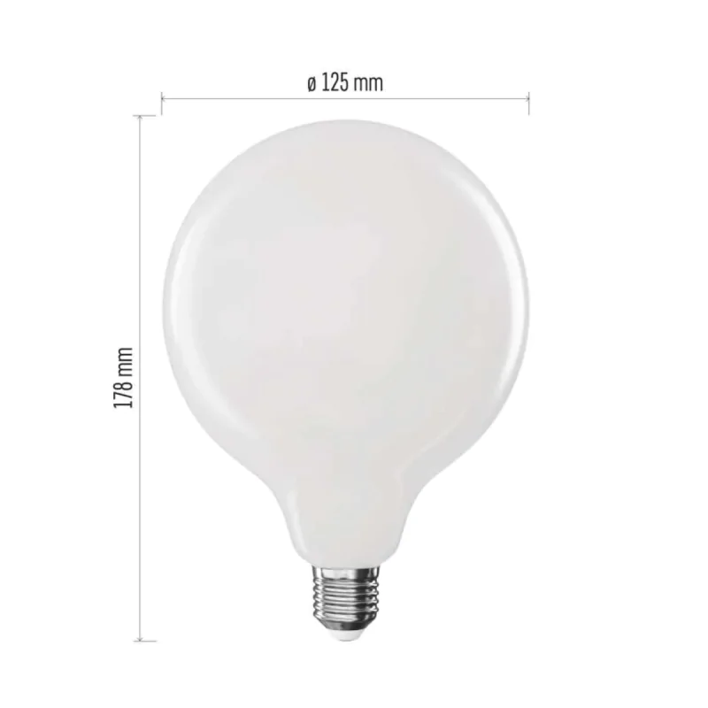 Led-owa żarówka z dużym trzonkiem E27 o kształcie kuli GLOBE działa z mocą 18W, a jej odpowiednikiem jest tradycyjne źródło światła o mocy 150W. Produkt posiada trzonek E27 i świeci ciepłym białym światłem o temperaturze barwowej 2700K i strumieniu świetlnym 2452 lumenów. Żarówka led GLOBE E27 wyposażona została w mleczny klosz. Szacowany czas działania żarówki to około 25 000h oraz 25 000 cykli włączeń i wyłączeń. Model rozsyła światło pod kątem 340 stopni. Żarówka posiada wydłużoną 3 letnią gwarancję, a jej wymiary to 172x125x125 mm. Model dostępny również w wersji neutralnej.