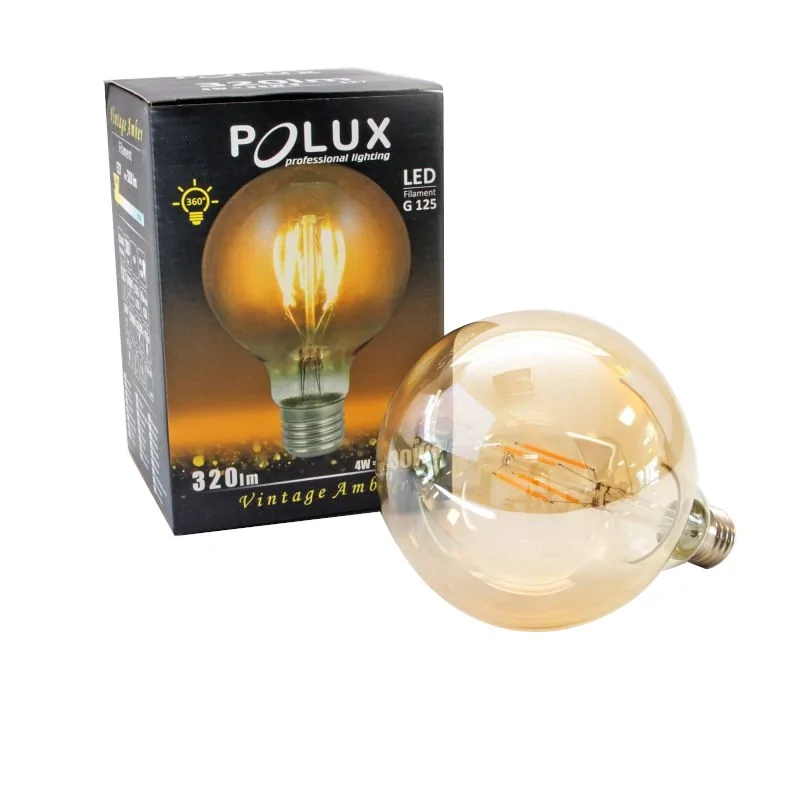 Okrągła LED-owa żarówka firmy Polux to dekoracyjne rozwiązanie przypominające pierwsze modele żarówek sprzed lat. Lampka led z filamentami idealnie odnajdzie swoje zastosowanie w mieszkalnych wnętrzach wykończonych zarówno w nowoczesnym stylu, jak i retro. Dzięki ciepłej, białej barwie światła 2000K żarówka wprowadzi sielski i przytulny charakter do wnętrza. Dzięki zastosowaniu technologii LED żarówka jest bardzo trwała i energooszczędna. Żywotność jest przewidziana aż na 25000 godzin pracy. Moc dekoracyjnej żarówki GLOB to 4 waty, co odpowiada tradycyjnej 30 watowej żarówce.