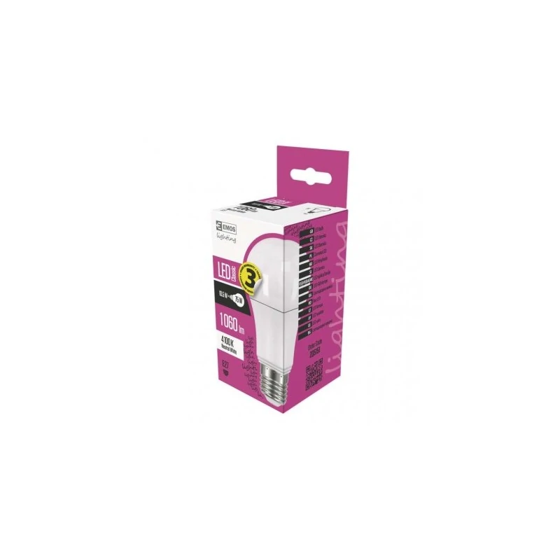 Żarówka LED Classic A60 10,7W-75W E27 neutralna 1060lm 3 lata EMOS ZQ5151
