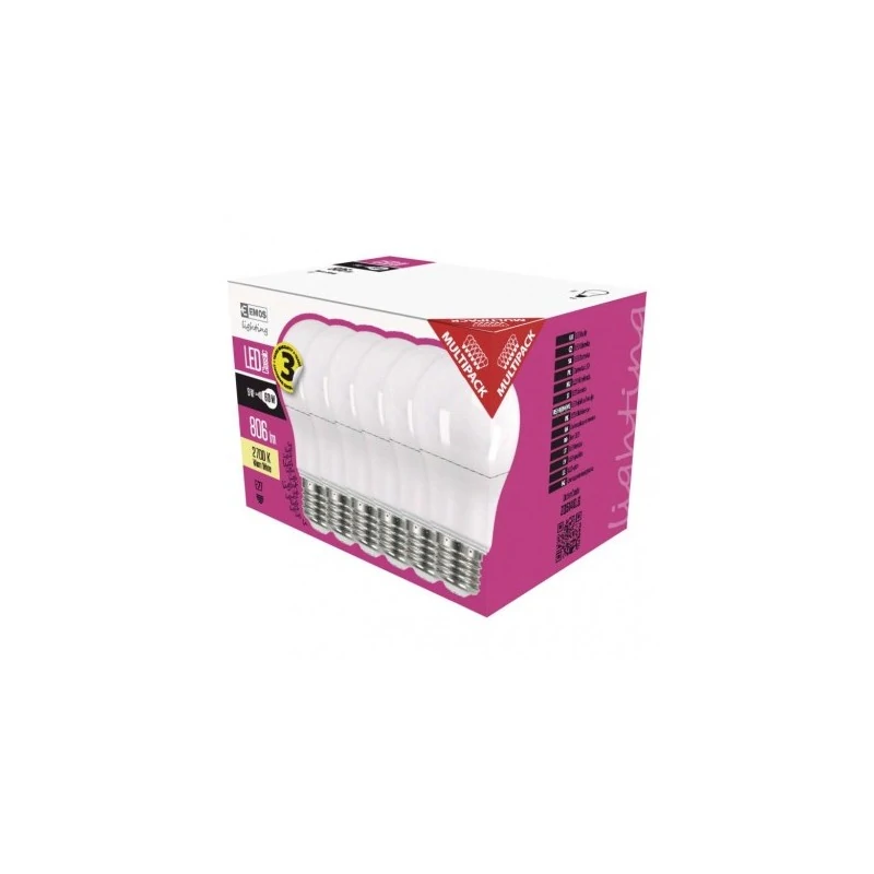 Żarówka LED komplet 6 sztuk A60 8,5W-60W E27 806lm 3lata EMOS ZQ5140.6