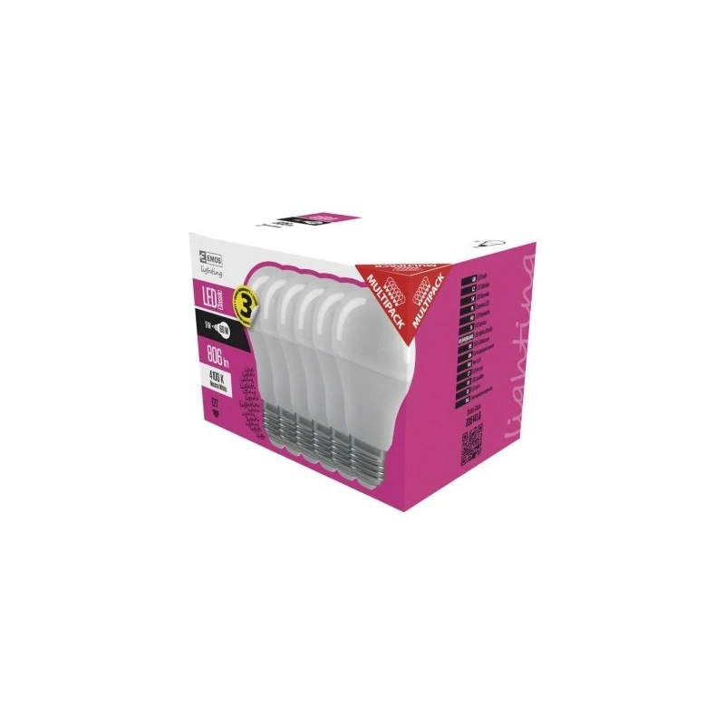 Komplet 6 Żarówek LED A60 8,5W-60W E27 neutralna 806lm 3lata EMOS ZQ5141.6