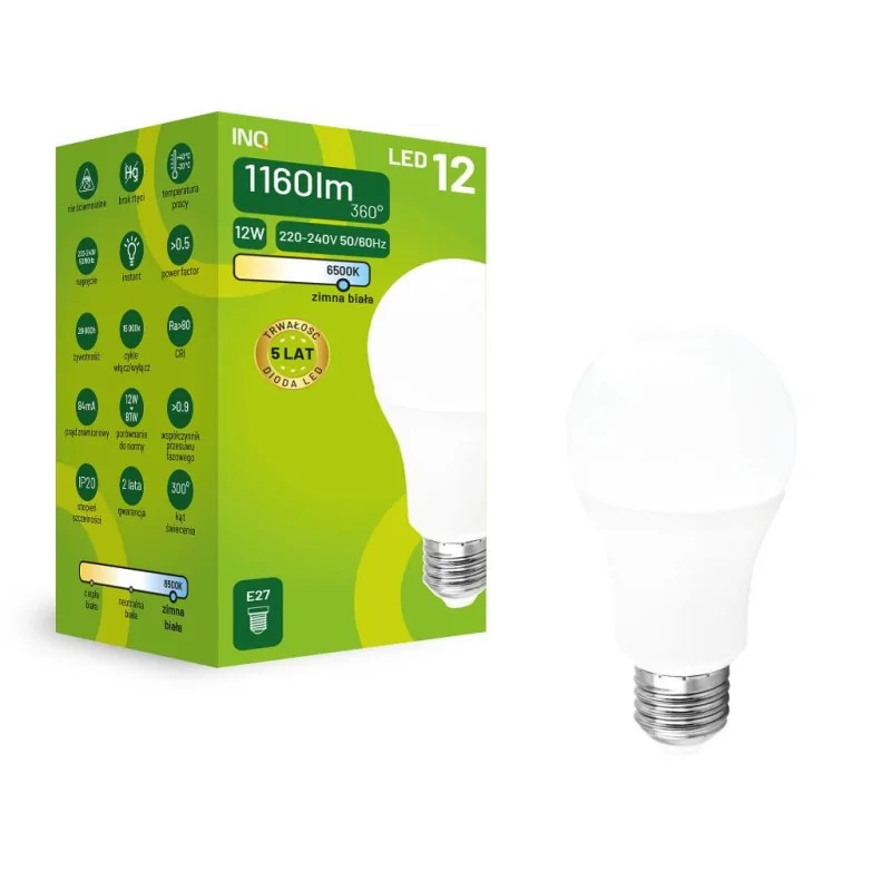Żarówka LED E27 zimne światło 12W 1160lm 6500K A60 ELA044CW INQ