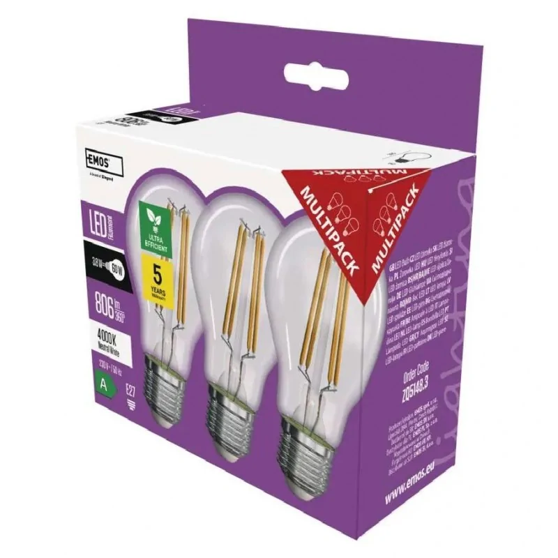 Żarówki LED Filament A60 3xE27 3,8 W 806 lm neutralna biel ZF5148.3 Emos
