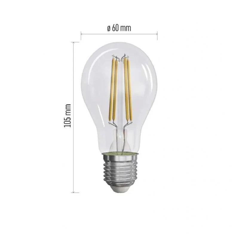 Żarówka LED ZF5148.3 Emos z dekoracyjnym filamentem świecić nam będzie neutralną barwą światła o temperaturze barwowej 4000K oraz strumieniu świetlnym 806lm. Energooszczędne źródło światła o mocy 3,8W, które jest zamiennikiem tradycyjnej żarówki 60W. Żarówka LED rozsyła światło pod kątem 300°. Przybliżona żywotność żarówki to około 50000h. Żarówka LED należy do klasy energetycznej A i objęta jest 5-letnią gwarancją producenta.