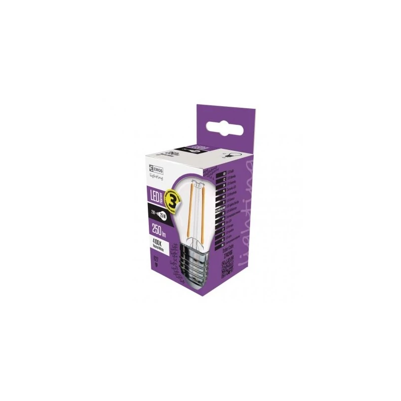 Żarówka LED Filament Mini Globe 2.2W-25W E27 neutralna 250lm 3 lata gw. EMOS Z74246