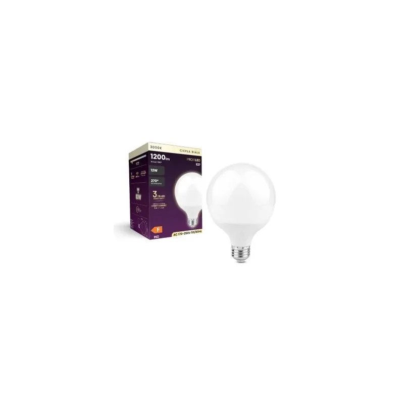 Żarówka LED marki INQ o przyjemnej ciepłej barwie światła równej 3000K. Żarówka idealnie nadaje się do oświetlenia domowego zacisza, jak również miejsca pracy. Prezentowane źródło światła o wymiarach 14,6x9,5cm posiada strumień świetlny równy 1200 lumenów. Żarówka LED z gwintem E27 jest w kształcie dużej bańki GLOB G95. Żarówka jest o mocy 12 W.