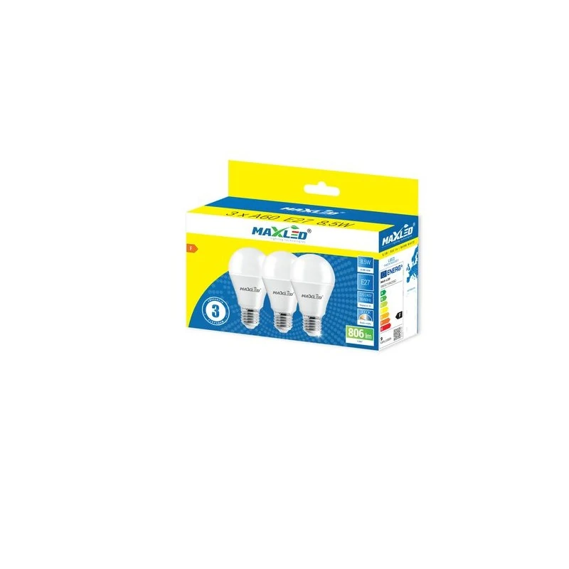 Zestaw 3 żarówek LED A60 E27 8,5W - 60W 806lm 4000K neutralne światło MAXLED