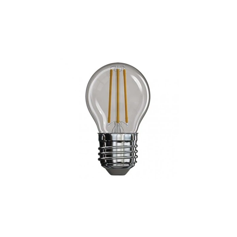 Led-owa żarówka z gwintem E27 mini kulka działa z mocą 6W, a jej odpowiednikiem jest tradycyjne źródło światła o mocy 60W. Produkt posiada trzonek E27 i świeci ciepłym białym światłem o temperaturze barwowej 2700K i strumieniu świetlnym 810 lumenów. Żarówka led wyposażona została w przezroczysty klosz, w którym znajdują się dekoracyjne filamenty. Prezentowane źródło światła będzie świetnym rozwiązaniem w lampach z widocznym źródłem światła. Szacowany czas działania żarówki to około 25000h oraz 30000 cykli włączeń i wyłączeń. Żarówka posiada wydłużoną gwarancję - 3 lata. Model dostępny w różnych mocach i barwach. Żarówka rozsyła światło pod kątem 300 stopni.