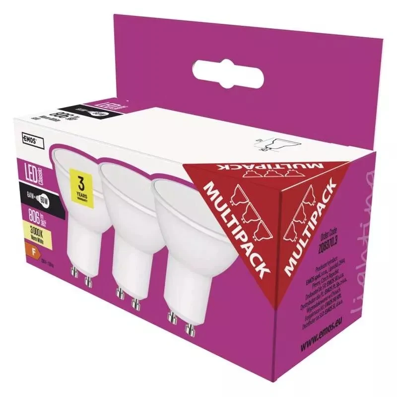 Komplet Żarówka led 3 sztuki 8,4W-60W GU10 ciepła biel 806lm EMOS ZQ8370.3