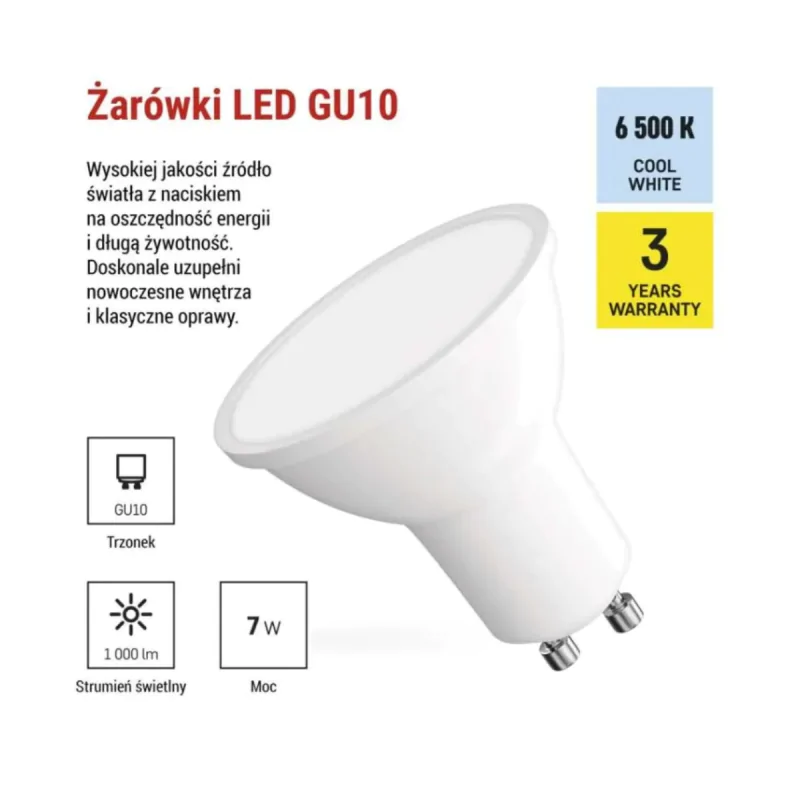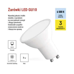 Mocna żarówka LED Gu10 z zimnym światłem Gu10 7W 6500K EMOS