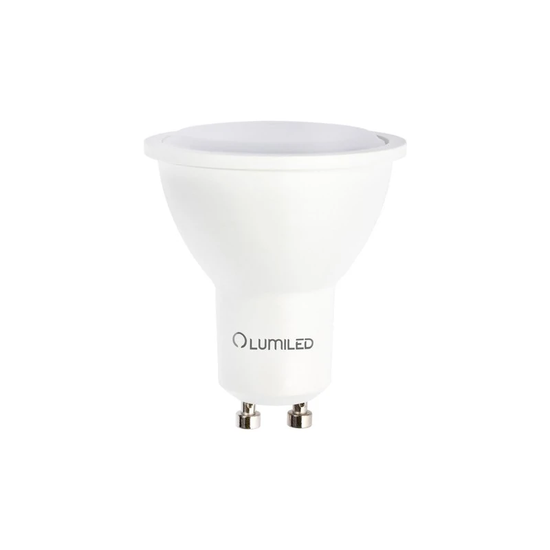 Żarówka energooszczędna LED GU10 firmy LUMILED działa z mocą 5W (odpowiednikiem jest tradycyjna żarówka o mocy 35W). Żarówka LED należy do klasy energetycznej F, a jej strumień świetlny wynosi 470 lm. Energooszczędna żarówka firmy LUMILED świeci ciepłą barwą światła o temperaturze barwowej 3000K. Zastosowana przetwornica CCD w żarówce LED sprawia, że żarówka jest odporna na spadki i wzrosty napięcia w sieci. Światło nie migocze, ani nie drży. Przetwornica CCD sprawia, że żarówka jest bezawaryjna przez długi czas.