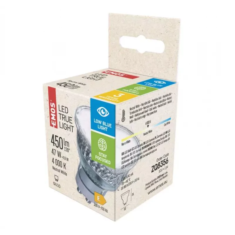 ZQ8356 Żarówka niemęcząca oczu Low Light BLUE LED True Light GU10 4,8W neutralna 450lm EMOS