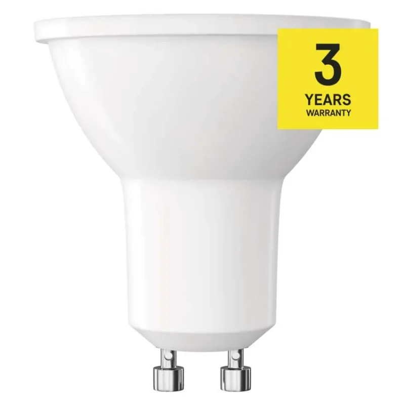 Żarówka LED ZQ8E13 marki EMOS, jest to energooszczędne źródło światła o neutralnej barwie, równej 4000K, która jest najbardziej zbliżona do światła dziennego. Strumień świetlny jest na poziomie 345 lumenów. Żarówka LED z gwintem GU10 charakteryzuje się długą żywotnością, pracuje nawet do 30000h. Produkt przy niskim poborze energii uzyskuje wysoką wydajność świetlną. Żarówka LED o mocy 3W jest zamiennikiem tradycyjnej żarówki o mocy 32W. Żarówka rozsyła światło pod kątem 100°.