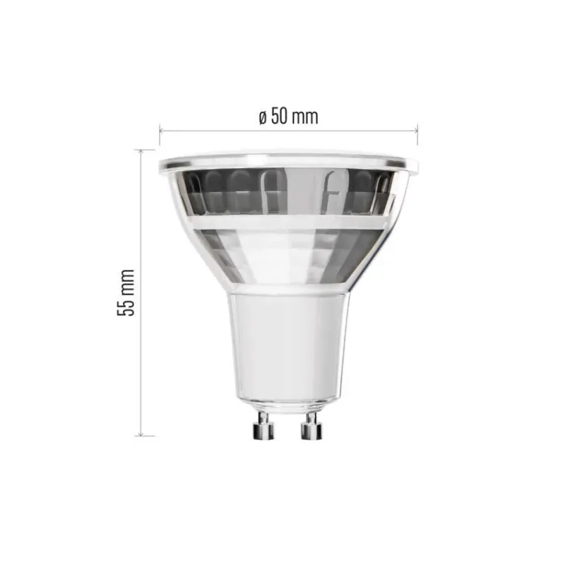Żarówka LED ZQ8E18 EMOS, jest to energooszczędne źródło światła o neutralnej barwie, równej 4000K, która jest najbardziej zbliżona do światła dziennego. Strumień świetlny jest na poziomie 345 lumenów. Żarówka LED z gwintem GU10 charakteryzuje się długą żywotnością, pracuje nawet do 30000h. Produkt przy niskim poborze energii uzyskuje wysoką wydajność świetlną. Żarówka LED o mocy 3W jest zamiennikiem tradycyjnej żarówki o mocy 32W. Żarówka rozsyła światło pod kątem 100°.