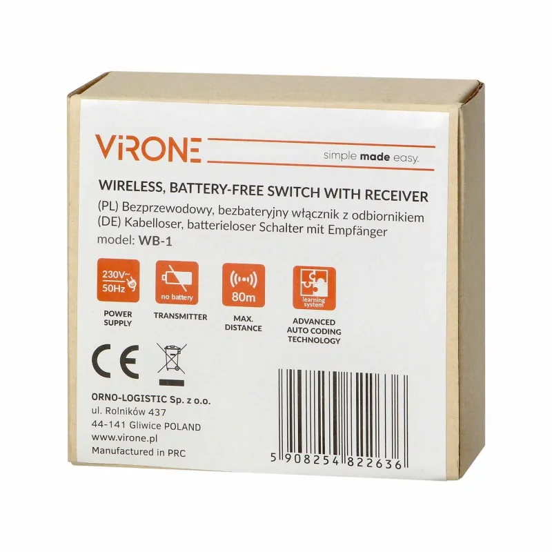 Bezprzewodowy bezbateryjny włącznik z odbiornikiem WB-1 ORNO